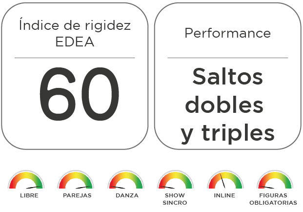 Rigidez lateral: 60 – ideal para patinadores de alto nivel que realizan saltos dobles, axel y triples con potencia y control.